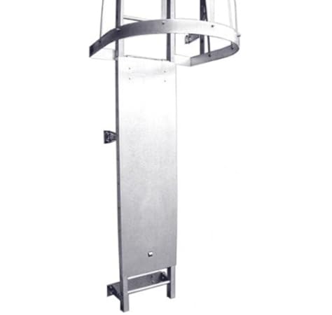 This ladder guard is 7 long and is mounted directly over the base of the ladder to deter unauthorized use. Series f fixed ladders. Intended for purchase at same time as fixed ladder. The ladder guard is mounted directly over the ladder climbing rungs to prevent unauthorized use.